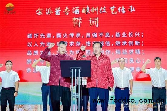 图为余派酱香传承人:茅源酒业余方开、夜郎谷酒业余方强40周年庆典宣誓