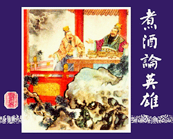 二人以青梅下酒,酒正酣时,天边黑云压城,忽卷忽舒,有若龙隐龙现。曹操说:“龙能大能小,能升能隐;大则兴云吐雾,小则隐介藏形;升则飞腾于宇宙之间,隐则潜伏于波涛之内。方今春深,龙乘时变化,犹人得志而纵横四海。龙之为物,可比世之英雄。玄德久历四方,必知当世英雄。”曹操实乃不世出的绝顶人物,这一番话,看似描述龙之变化,目的是说“人得志而纵横四海”。显然,这是他的一番自我剖白,借物咏志。当然他也下了一个套,试探在刘备眼里,什么人能纵横四海,比得上我曹操。刘备接连指出袁术、袁绍、刘表、孙策和刘璋等地方豪强,都被曹操一一否决。刘备这个回答应该给满分,因为当时是个人都会如此回答。这样曹操也就认为刘备见识一般,和常人无异。接着曹操给出了当世英雄的标准,他说,“夫英雄者,胸怀大志,腹有良谋,有包藏宇宙之机,吞吐天地之志者也。”刘备继续装傻,问:“谁能当之?” 曹操指了指刘备,后指了下自己,说:“今天下英雄,惟使君与操耳!” 当时天雨将至,雷声大作。刘备装作受了惊吓的样子,筷子掉到了地上:“一震之威,乃至于此。”曹操笑着说:“丈夫亦畏雷乎?”刘备说:“圣人迅雷风烈必变,安得不畏?”将内心的惊惶,巧妙的掩饰过去了。