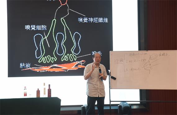 师者,传道授业解惑也。授课现场,赖登燡从白酒品鉴的“色香味格”,讲到高度酒、低度酒的发展历程,再到纯粮酒的鉴别技巧。同时,对于与会人员提出的问题,也进行了全面细致的解答。他风趣幽默的言语,深入浅出的讲解,赢得了大家的阵阵掌声。