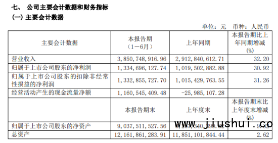 8月24日晚间,今世缘发布了2021半年度报告。报告显示,今年上半年,今世缘实现营业收入38.51亿,比上年同期增长32.20%;实现归属于上市公司股东净利润13.35亿,比上年同期增长30.92%。