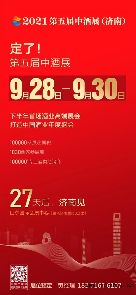 9月1日,中酒展组委会官方宣布,2021第五届中酒展将于9月28日在济南正式开幕,展期为9月28日—9月30日,为期3天。