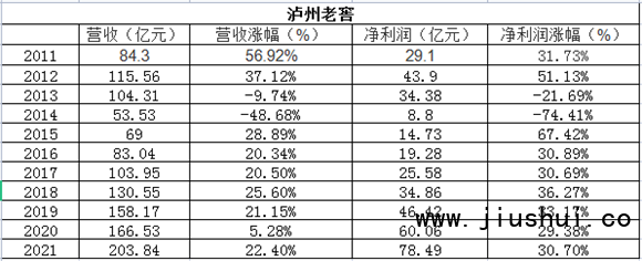 人的本质是一切社会关系的总和,企业也是。前几天,泸州老窖发布2021年业绩快报:营收203.84亿元,同比增长22.4%(净增37.32亿元);净利润78.49亿元,同比增长30.7%(净增18.43亿)。