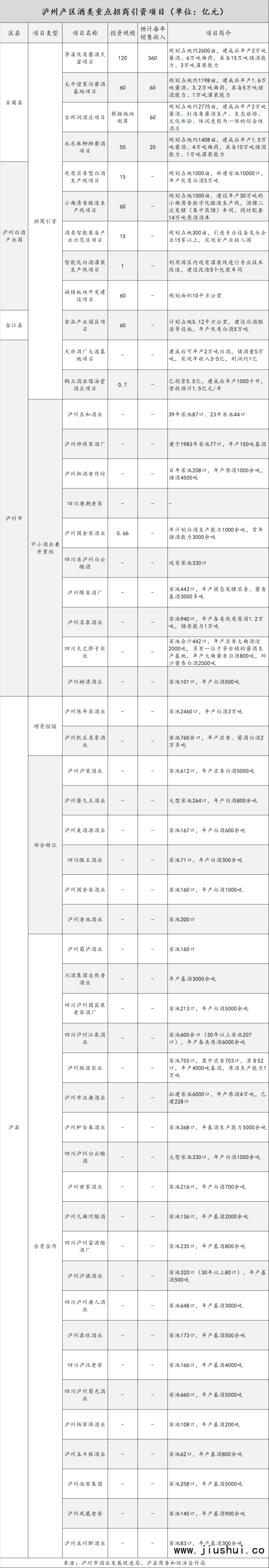 根据上述表格,微酒发现本次泸州产区招商具有三大特点: