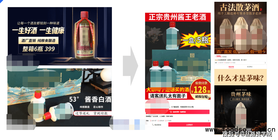白酒行业目前线上投放的链路有三种,第一种是直购,以茅台镇的白酒为代表,外包装相对比较粗糙,其售价相对比较低廉,以整箱的方式进行售卖,货到付款的投放居多,也有在线支付的,ROI以及退货率数据波动对后端盈利影响较大。