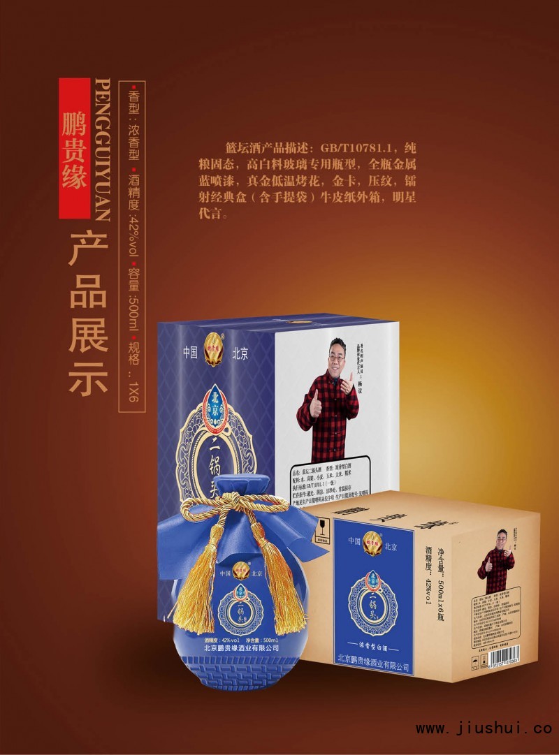 公司所辖实体酒厂座落在古运河畔,黄河故道所经之地的武城,占地30余亩,拥有**调酒师酿酒师2名,拥有一个酿造车间、三条全自动生产线。公司常年与泸州老窖酒厂合作,先后开发出“鹏贵缘”原浆酒、二锅头系列、苦荞酒系列、青春时尚白酒等系列白酒,产品远销三十多个省市自治区。