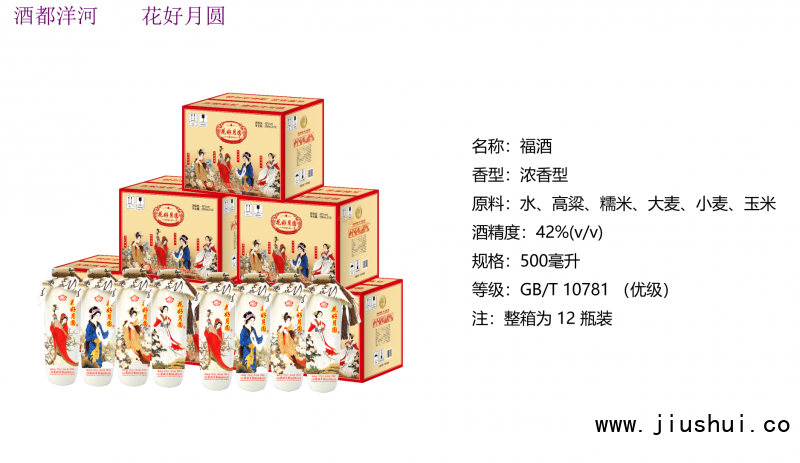 花好月圆酒产于中国酒都洋河。花好月圆酒一直遵循着“质真价优、见证幸福”的经营宗旨,为消费者提供窖香醇和、绵柔甘冽的高性价比纯粮白酒,充分满足消费者个性化需求,见证消费者每个幸福时刻,彰显独特生活品质。欢庆团圆宴,花好月圆酒。公司致力于传承白酒文化,沿用古法酿造工艺,公司与政府合作,将酒厂生产区、展示区等升级建造成为了江苏省的酒文化综合体,厂区内的洋河酒文化博物馆更是酒都洋河的,综合体被评为江苏省PPP 试点示范项目。