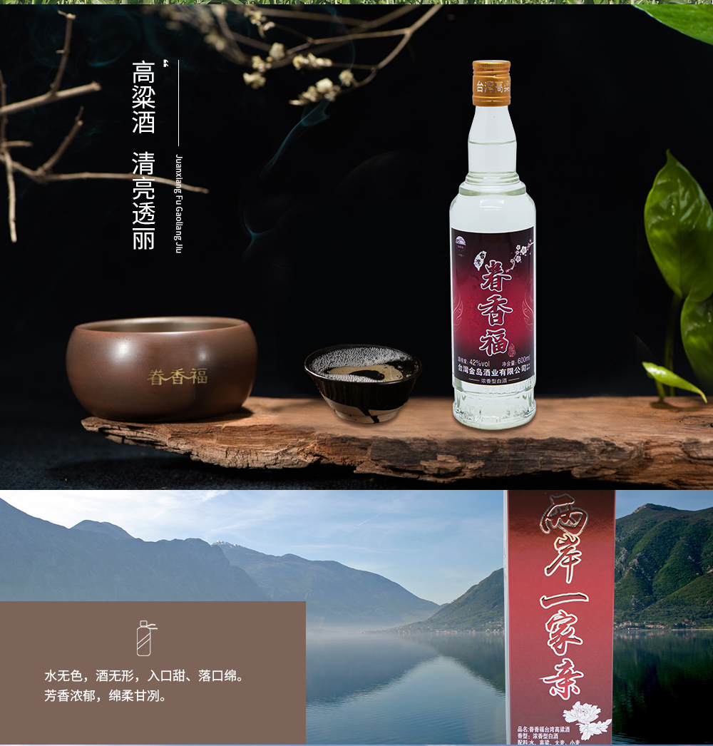 安徽眷香福酒业有限公司秉承“宝岛眷香福,两岸一家亲”的情感理念,“千里眷念情不忘”,联合推出一系列低度、中度、高度浓香型“眷香福”高粱酒,以促进两岸文化交流和弘扬中国传统酒文化。