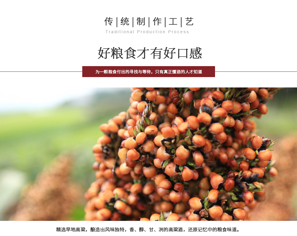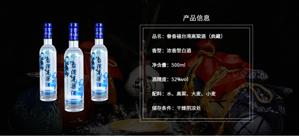 好酒必有好水," 为有源头活水来 "。优质水源,是酒水品质成功的关键。眷香福酒水主体来自台湾当地水质甘甜的“宝月神泉”,利用特产旱地高粱,并且引用,加上当地酿酒师傅的专业经验,酿造出风味独特,香、醇、甘、冽的高粱酒--眷香福高粱酒。