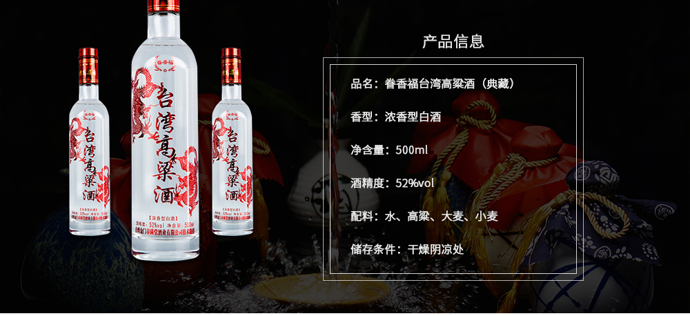 好酒必有好水," 为有源头活水来 "。优质水源,是酒水品质成功的关键。眷香福酒水主体来自台湾当地水质甘甜的“宝月神泉”,利用特产旱地高粱,并且引用,加上当地酿酒师傅的专业经验,酿造出风味独特,香、醇、甘、冽的高粱酒--眷香福高粱酒。
