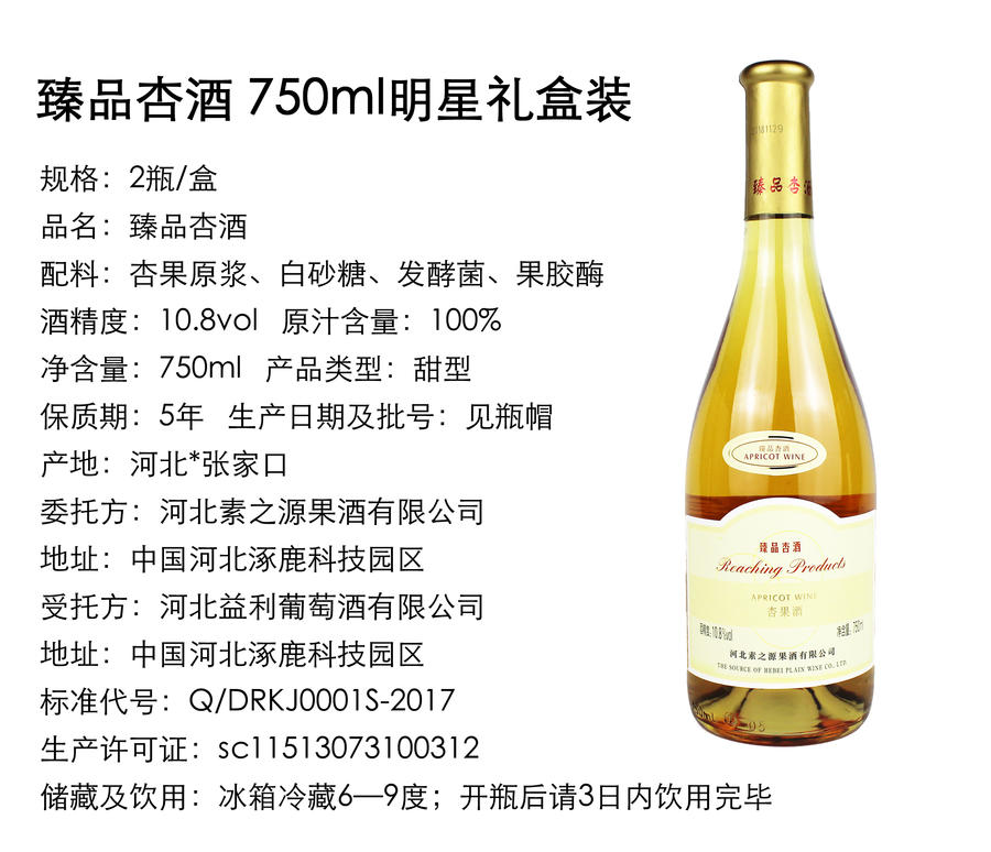 名称:臻品杏酒明星礼盒装750ml*2(10.8度)