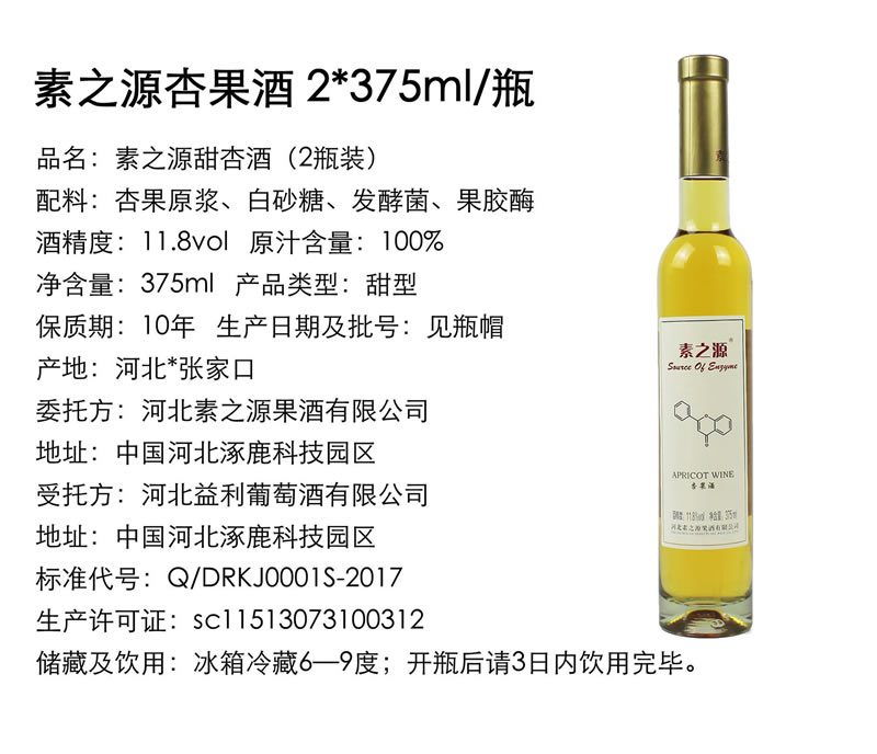 名称:素之源臻品杏果酒(375ml*12 11.8度)