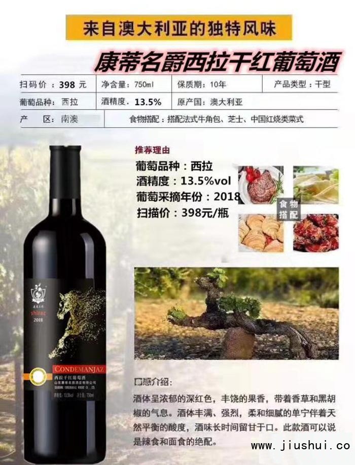 品名:康蒂名爵西拉干红葡萄酒