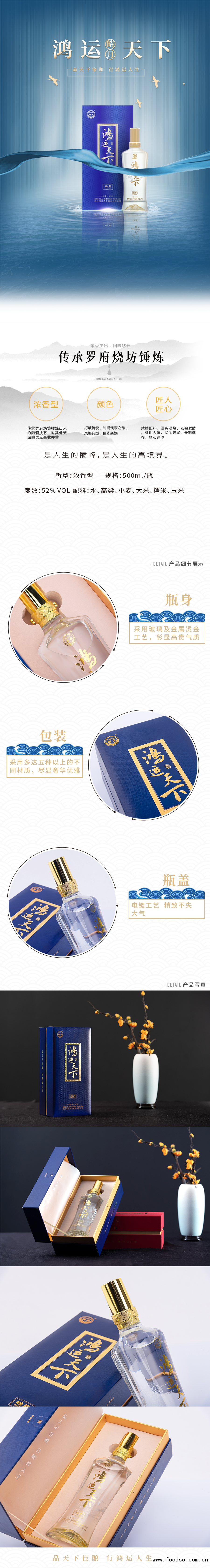 鸿运天下天生符合酒城文化基因,从其品牌调性到其产品智慧,无不是麒麟温酒器的艺术化身。鸿运天下酒业不仅从中华酒文化中汲取营养,目前公司已构建酱香、浓香两大品牌体系四个单品系列,我们有着特色鲜明、个性独特的品牌精神,在公司模式创新下结合市场持续打造品牌IP与用户互动互通。