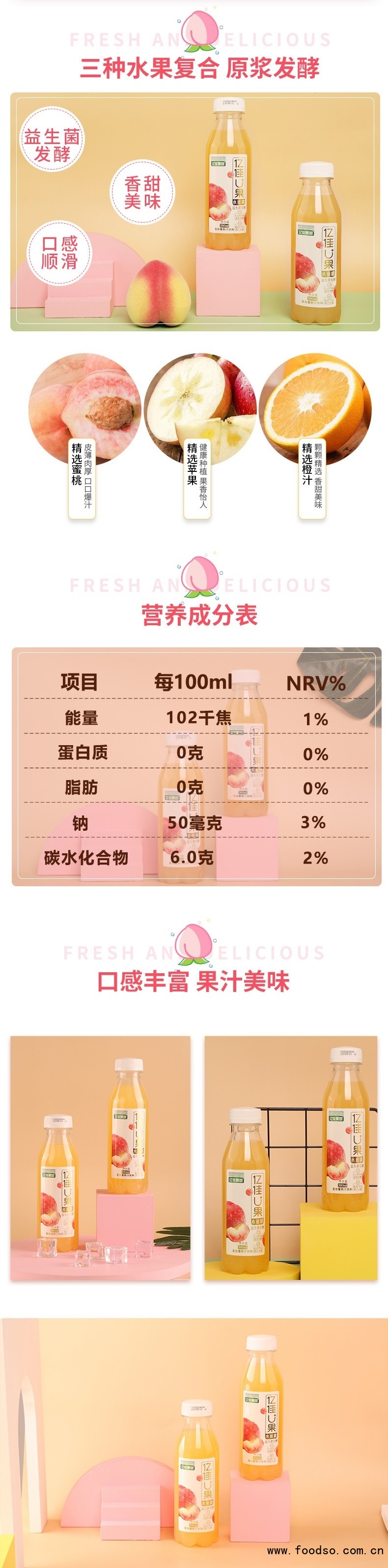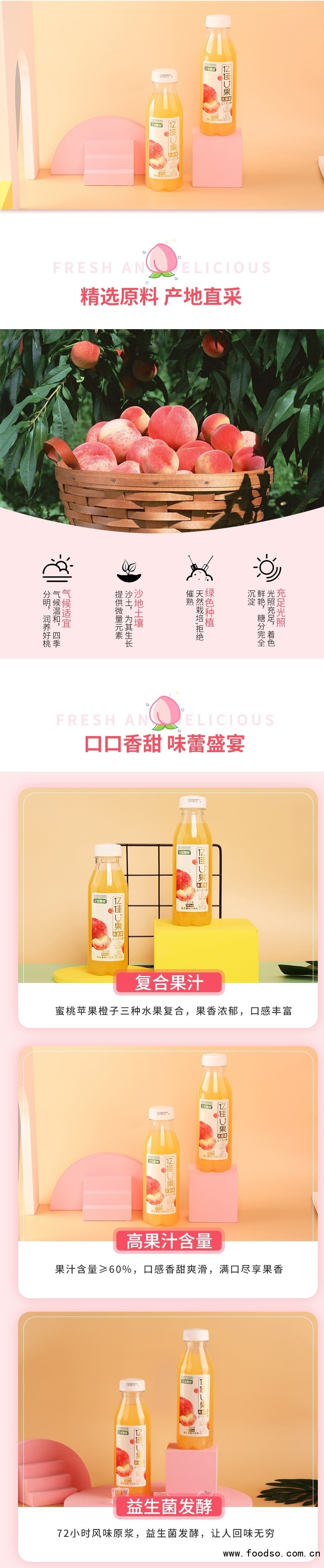 制造优质产品,引 领健康生活,一直是亿佳果园的企业愿景,公司主打产品草莓汁 饮料始终坚持优质草莓生榨、绝不添加一滴香精、一颗糖精,原汁原味带给广大消费者健康、品质、美味的全新感受;自主研发的新一代天然绿色健康饮品——苹果醋、山楂汁、红枣汁,更是沿袭古方,秉承原生态科学理念,结合现代工艺而生产,亿佳果园倡导“食疗养生”“药食同源”的科学理念,让 消费者享受果汁美味的同时,营养更均衡,身体更健康!产品上市以来深受消费者青睐。