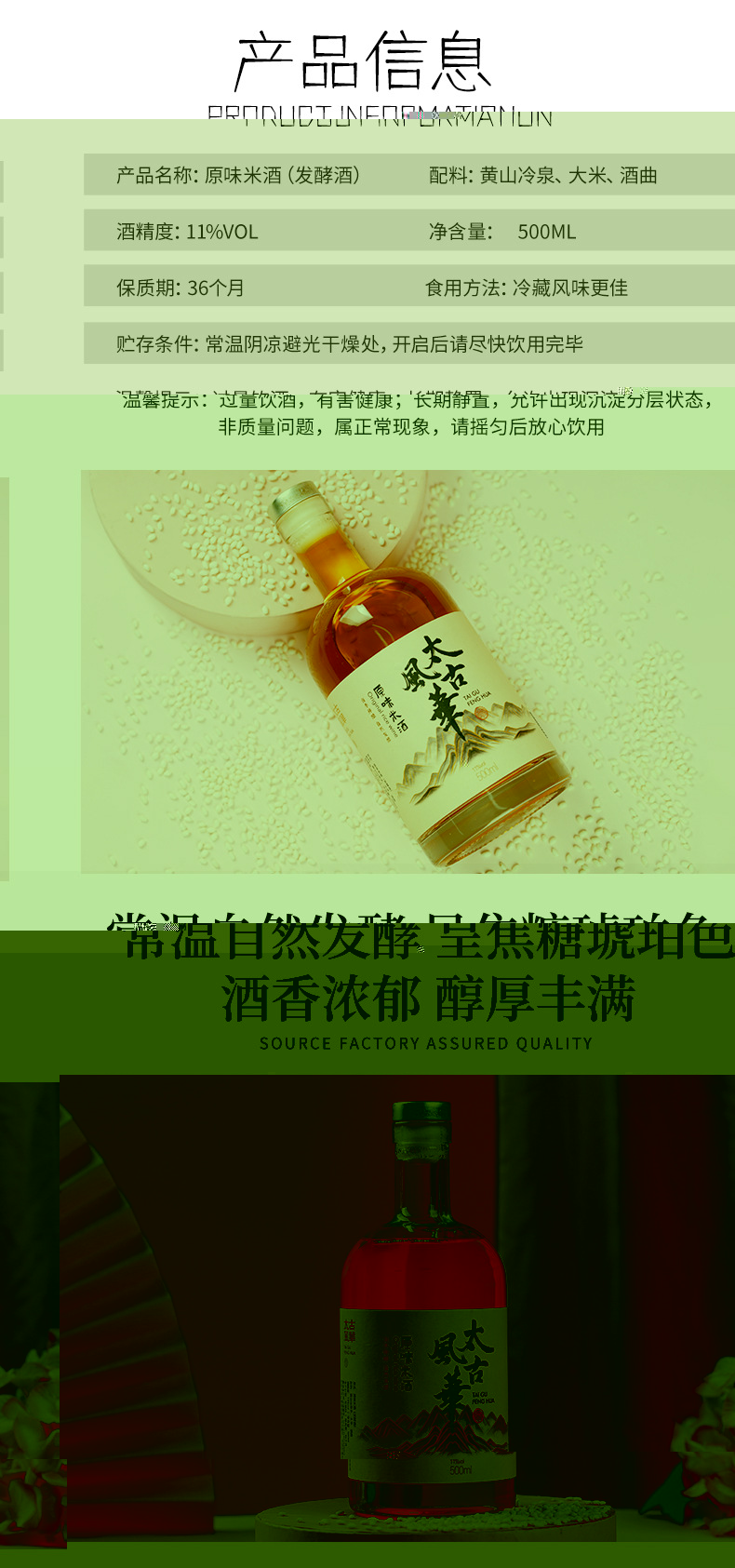 太古风华(黄山)酿造有限公司是一家集生态有机种植、米酒传承、创新研发、低度酒酿造生产为一体的专业低度潮饮酒生产供应商。 从种植源头抓起,传承千年徽州米酒非遗酿造工艺,结合现代单边低温酿酒技术,为品牌商提供高品质发酵型花果米酒解决方案。