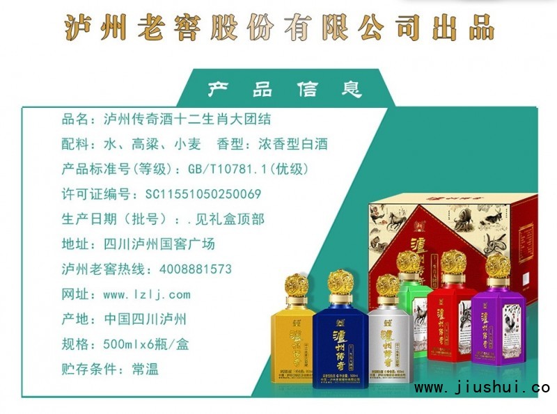 泸州老窖是中国最古老的四大名酒之一,“浓香鼻祖,酒中泰斗”,中国大型白酒上市公司(深交所股票代码000568)。其1573国宝窖池群1996年成为行业首家全国重点文物保护单位,传统酿制技艺2006年又入选首批非物质文化遗产名录,世称“双国宝单位”,旗下产品国窖1573被誉为“活文物酿造”、“中国白酒鉴赏标准级酒品”。泸州老窖股份公司出品新品{泸州传奇}系列酒现面向全国空白地区诚招代理商!