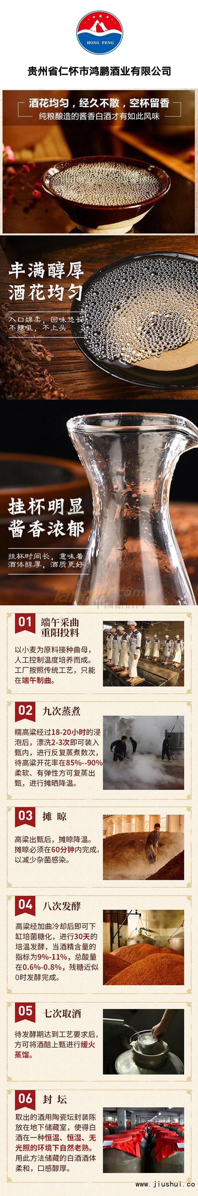贵州省仁怀市鸿鹏酒业有限公司,坐落于我国贵州茅台酒镇,红军四渡赤水纪念塔上方1公里处,地处酱香型白酒7.5平方公里核心产区内,公司注册资本500万元,是酱香型白酒生产、开发和销售的综合性民营酿酒企业。
